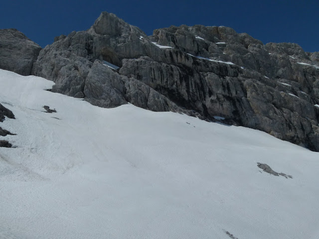 Ayer jueves pusimos rumbo a los Picos antes de que nos cogieran estos dias de calor que se nos avecinan, la ida era salir del cable e ir hasta la zona de la Palanca parando en los Heleros del Hoyo Tras LLambrion para comparar su estado actual con el mismo del año pasado. Dia despejado y aunque con calor,la temperatura era buena para caminar. La situacion de la nieve en Picos de Europa sigue siendo historica para la fecha, ahora se empiezan a ver las rimayas entre la roca y la nieve y se pueden observar unos espesores de nieve tremendos en muchos sitios, en hoyos Sengros el mastil de la estacion ya asoma un metro por encima de la nieve,por lo que todavia queda por alli unos 4 metros de nieve sobre el llano. En el Helero central del Tras LLambrion, aparecen unas grietas hermosas en la parte superior, fruto de la gran cantidad de nieve que hay y lo vertical del terreno, algunas de ellas tenian hasta 4 metros de longitud visible.Por algunas mediciones que hizimos,calculamos que aproximadamente hay unos 4 metros de nieve de mas en comparacion con las mismas fechas del año pasado, puede que mas, pero eso ya se ira viendo mejor cuando vaya avanzando el verano. Lo que ya va estar seguro es que otro año mas, la situacion de los heleros centenarios de Picos va a seguir con su buena evolucion de los ultimos años, sin mas aqui os dejo las fotos del dia , saludos.